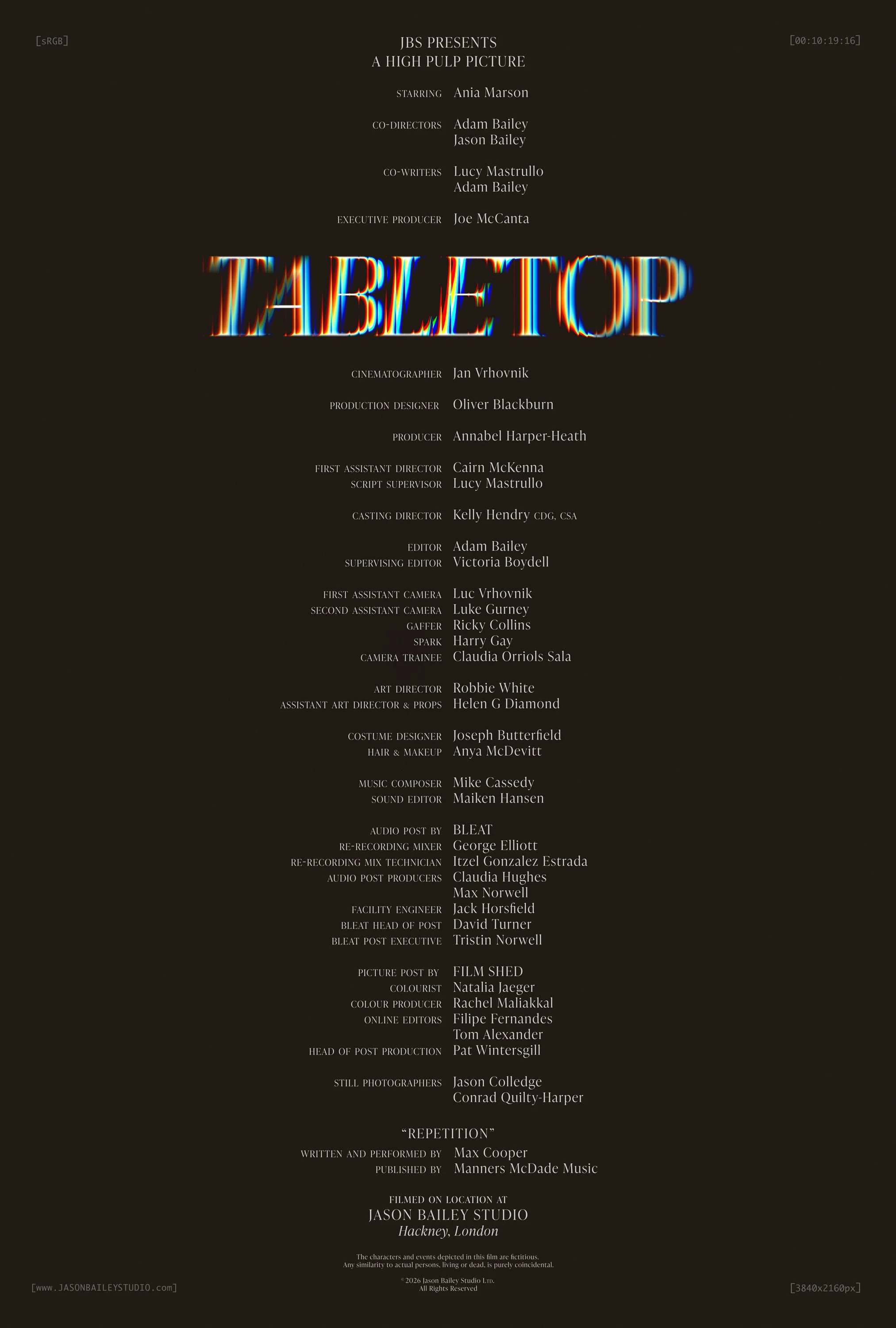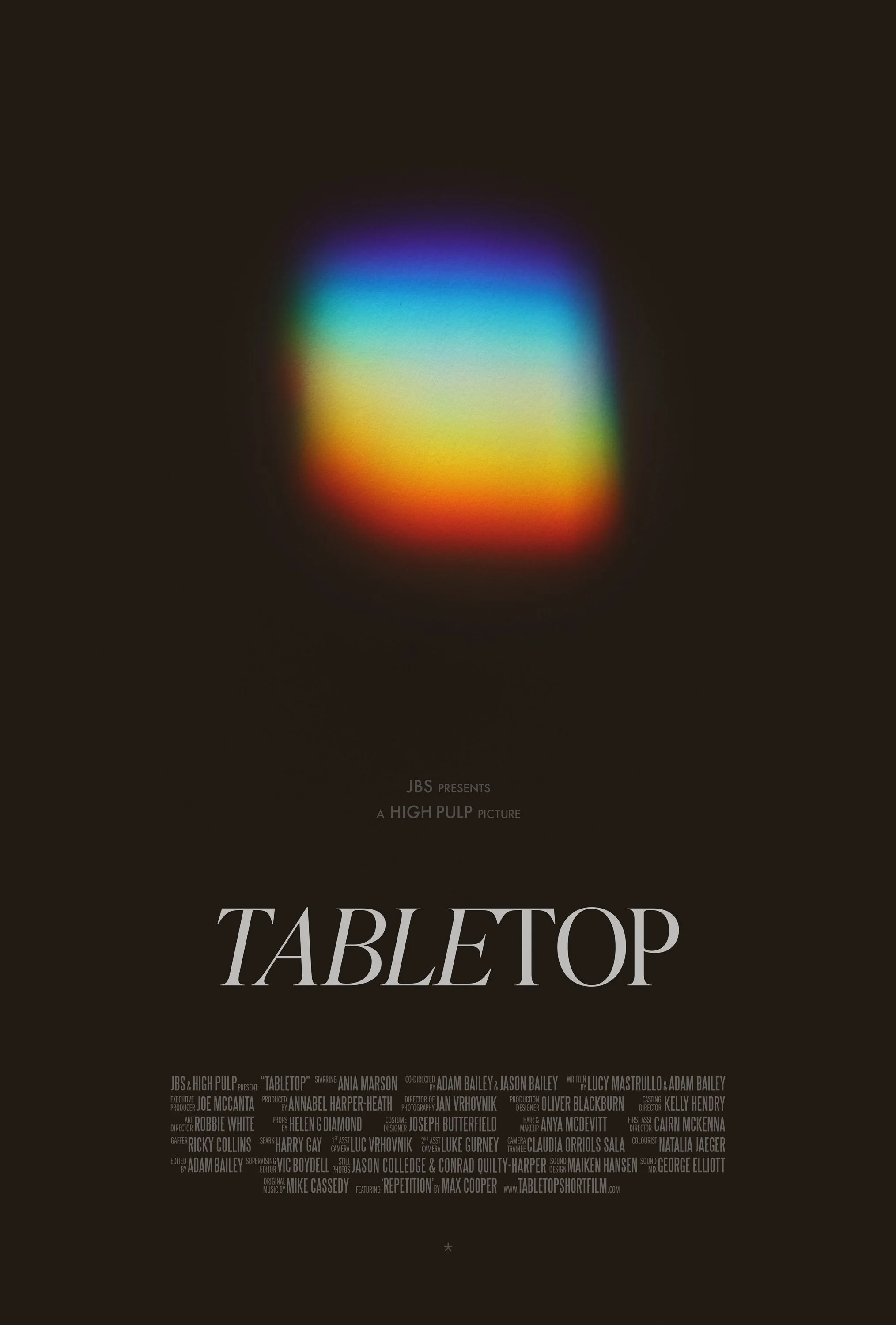 The team behind Tabletop is two brothers and their spouses, Adam & Lucy, Jason & Joe. After spending a decade working on separate continents we have reunited in London to make striking films on our own terms.